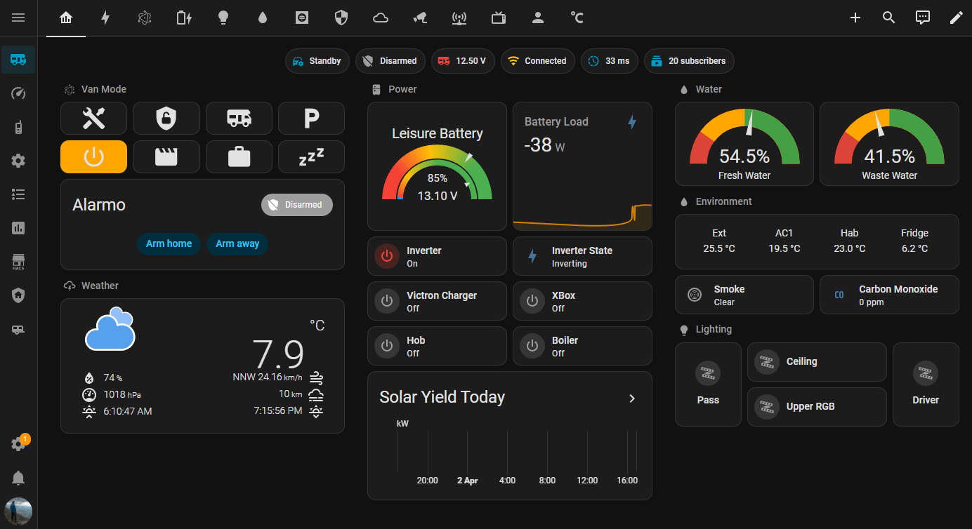 - Fully interactive controls: lights, heating, switches, Nomad Modes